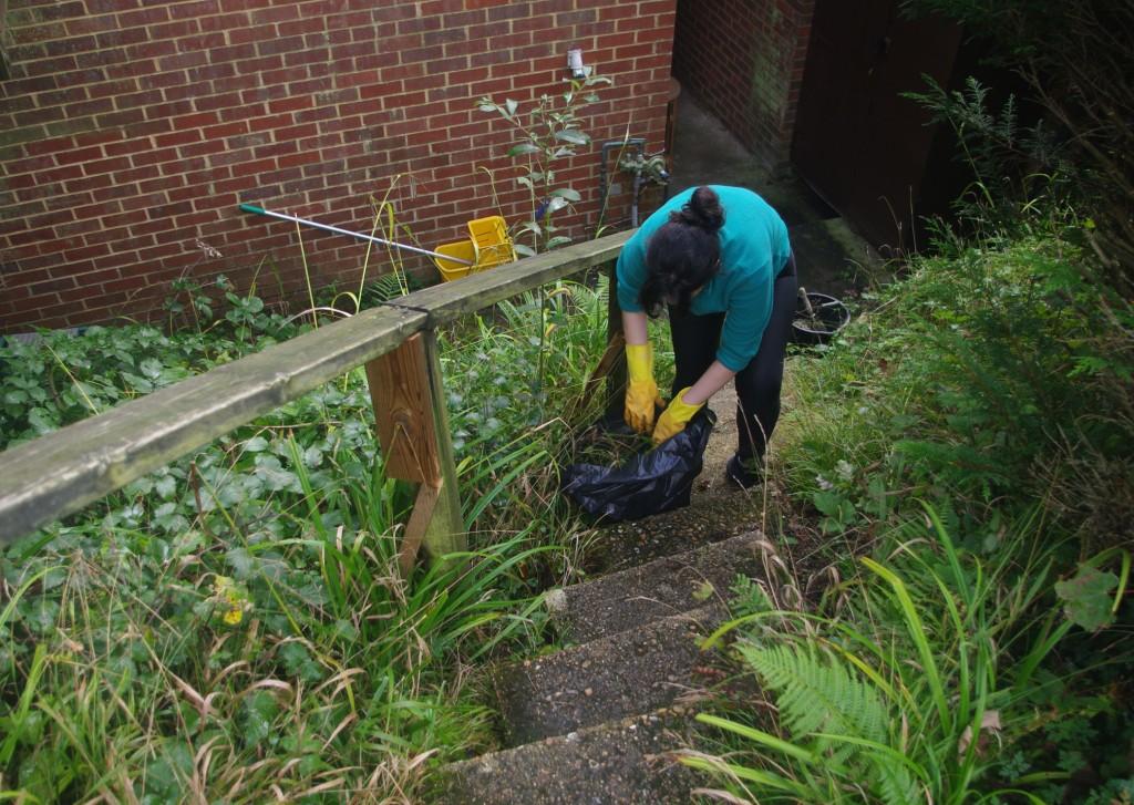 weeding concrete steps, Sat. October 14th 2023 Karla